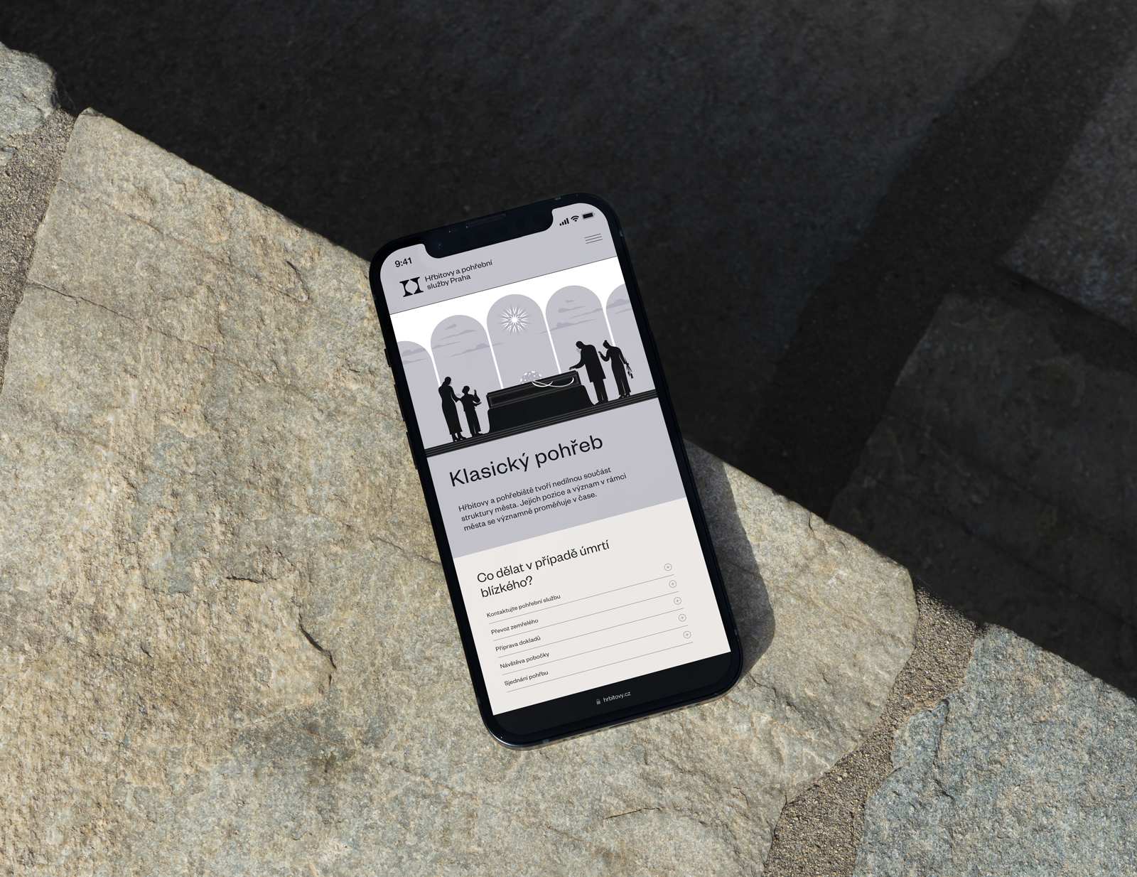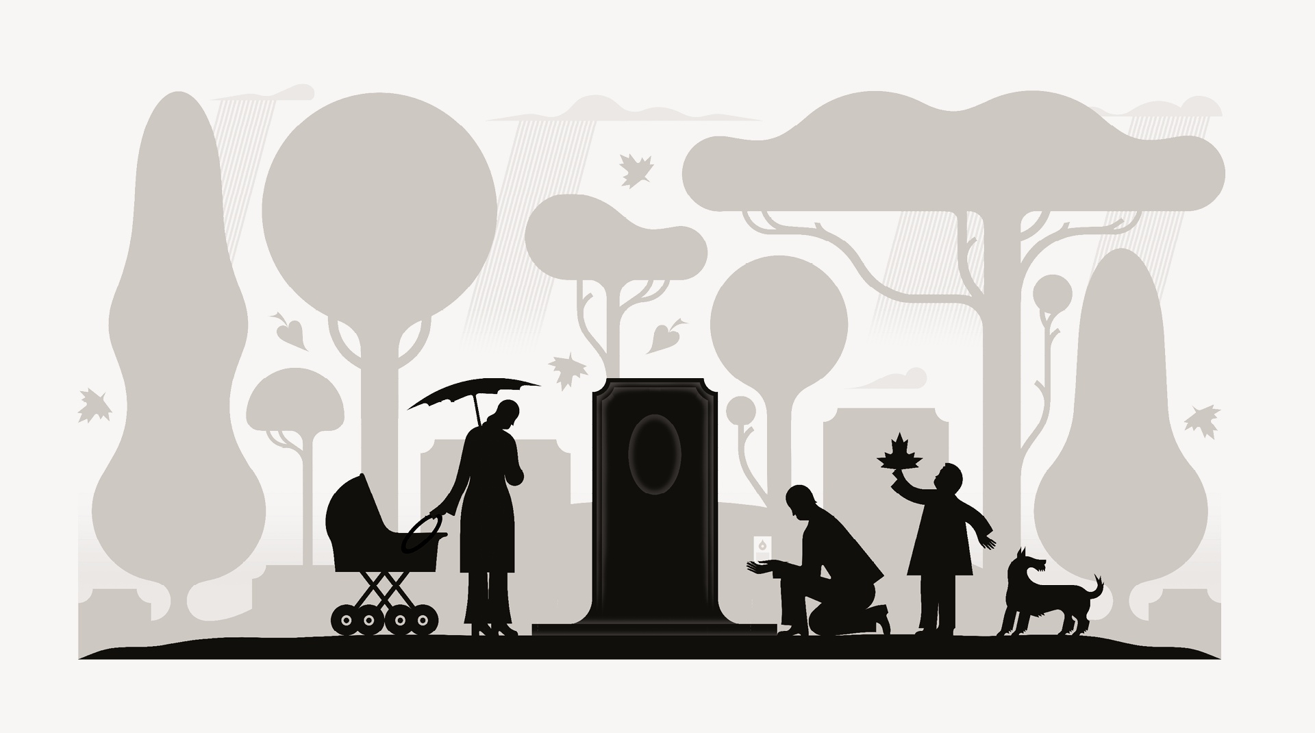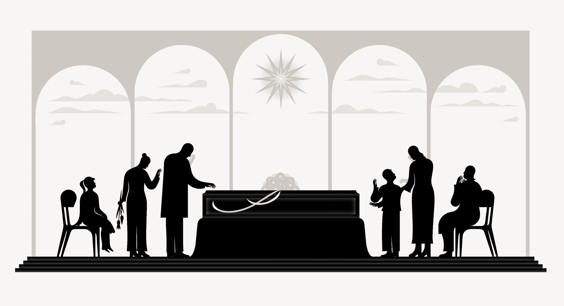 Stejně jako celý vizuální styl si i ilustrace klade za cíl citlivě propojit svět loučení se životem a život samotný. Ústředním tématem ilustrací je proto poetické spojení všedního s nadčasovým. Důvěrně známé detaily každodenního života tak nabývají širšího symbolického významu, a současně s tím se symboly loučení stávají přirozenou součástí života města. Pohyb mraků po obloze tak může představovat jenom počasí v rušném městě, anebo také symbolizovat plynutí času a proměnlivost životních cyklů. Letmé gesto ruky vyjadřuje loučení na konci dne, ale i cit, pro nějž těžko hledáme slova. Hvězdy jsou součástí oblohy, která se nám každou noc klene nad hlavou, ale jsou rovněž trvalým symbolem naděje. V ilustracích se může zrcadlit melancholie z doteku konce života i klid všedního dne. Vizuální základ ilustrací tvoří stabilní kompozice a střídmá nerušivá barevnost. Tento základní rámec pak dává prostor k jemné práci se siluetou a detailem. Ilustrace byly tvořeny tak, aby se daly využít jak samostatně, tak jako prvky začleněné do kontextu vizuální komunikace.“