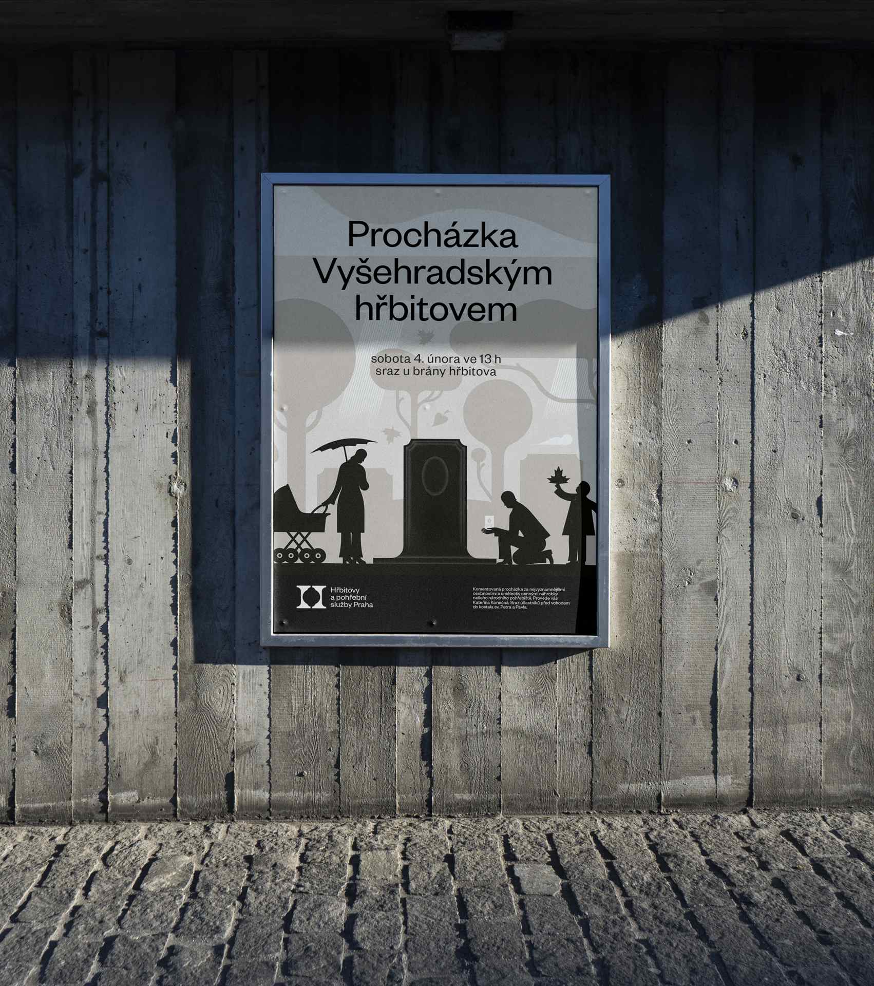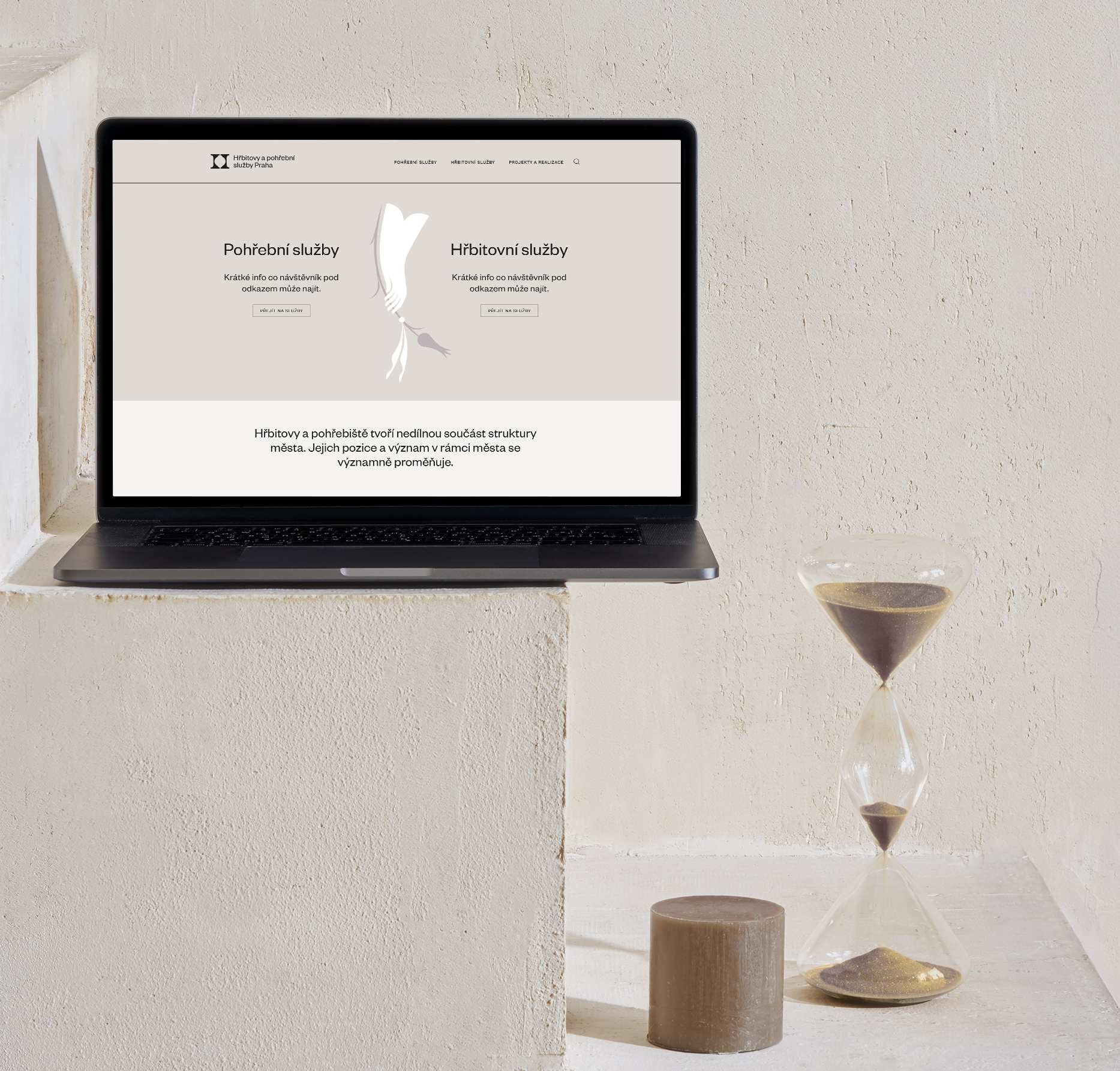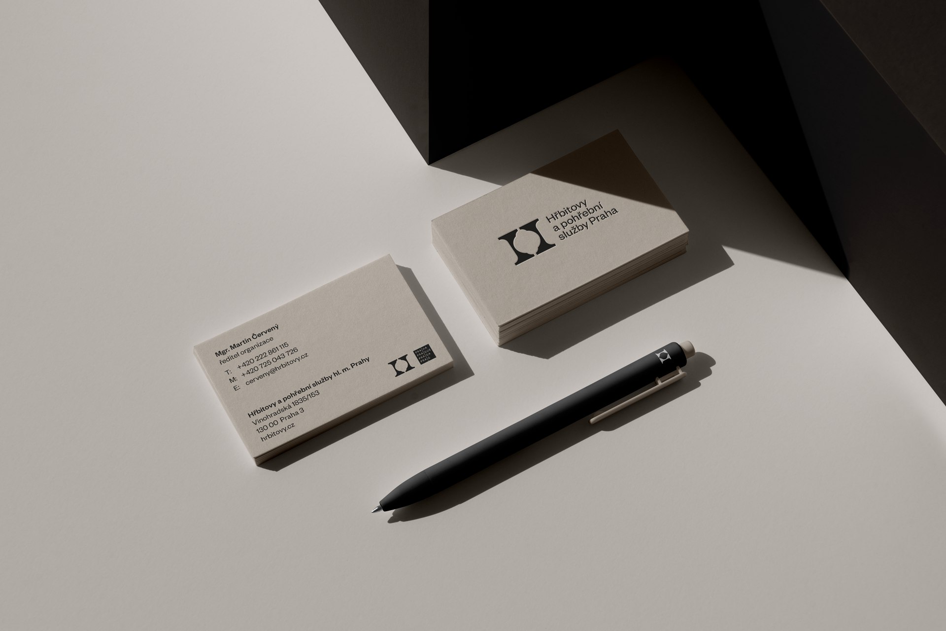 „Při navrhování vizuální identity jsme vycházeli z myšlenky na otevření hřbitovů potřebám současného města a jeho obyvatel, při zachování pietního rázu místa posledního odpočinku. Použili jsme titulní písmeno „H“, které po odstranění horizontální příčky symbolicky otevírá bránu živým, snaží se zbavit předsudků a vpouští do hřbitova život. Vznikly tak dva pilíře – hřbitovy a pohřební služby – dva subjekty spojené do jednoho. Výrazné obloučky v negativním prostoru odkazují na hřbitovní architekturu kostelů, hrobek i náhrobků.