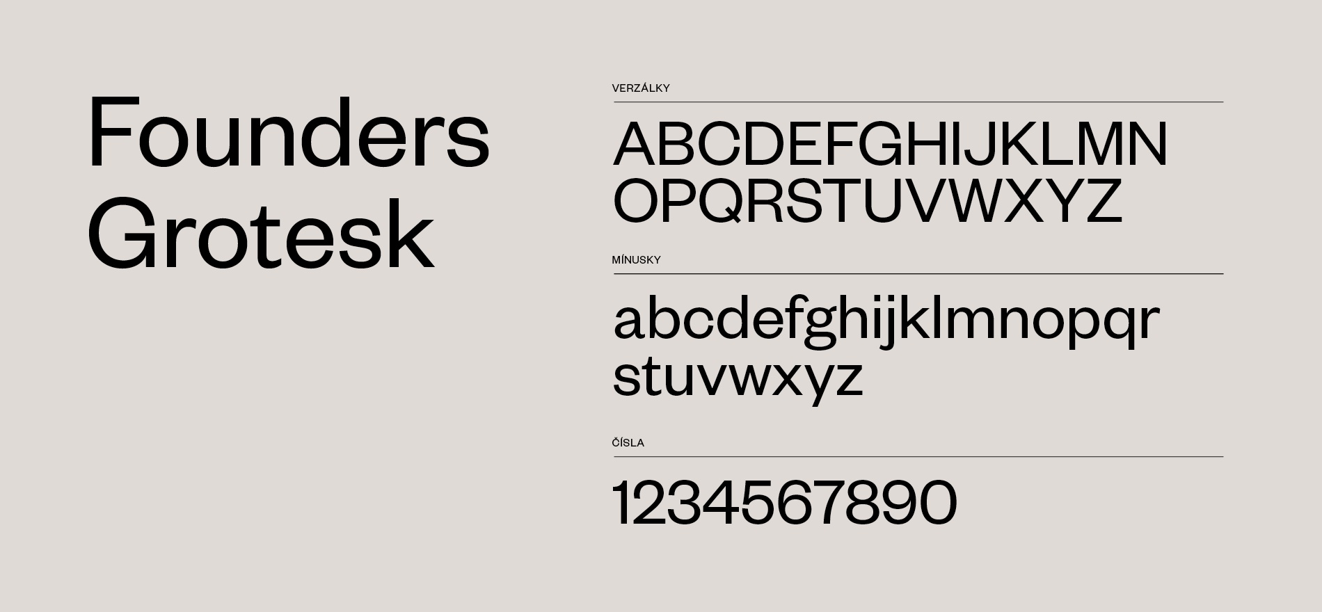 Jako primární font, který se bude objevovat napříč celou identitou, jsme vybrali Founders Grotesk od novozélandské písmolijny Klim Type Foundry. Jedná se o dobře čitelné bezserifové písmo s drobnými humanistickými detaily (například písmeno „t“ a „g“) má přívětivý lidský charakter. Jde o moderní a profesionálně zpracované písmo, které se odlišuje od chladných a prázdných geometrických písem, dnes tak nadužívaných ve velkých korporátních firmách.
