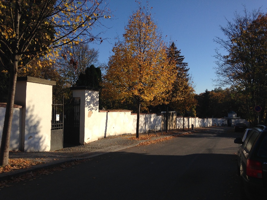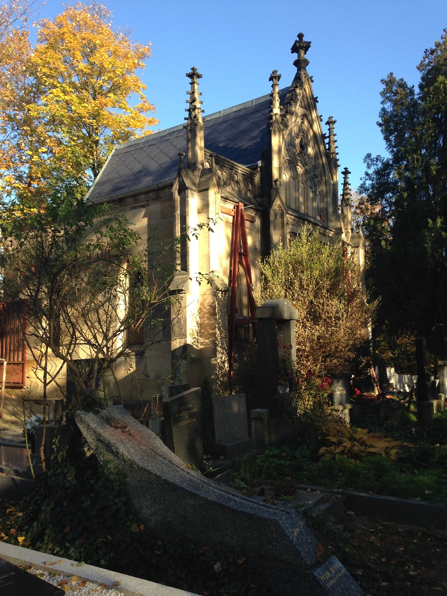 U západní zdi se nachází bývalá hrobka Johanna Sametze (1828–1893), zemského advokáta a akcionáře Smíchovského pivovaru. Hrobka má podobu novogotické kaple, po roce 1950 byla zrušena a vyprázdněna, nyní je v havarijním stavu.