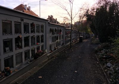 Původní kapacita hřbitova – 4 800 míst v urnovém háji a 3 080 v arkádách a kolumbáriích – byla však záhy vyčerpána, a tak v roce 1945 došlo k rozšíření hřbitova o část nacházející se pod Vinohradským hřbitovem. V současnosti je tak na tomto hřbitově 6 800 míst pro uložení uren mimo kolumbária a 4 880 míst v kolumbárních schránkách.