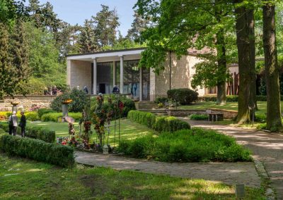 V areálu krematoria se nachází nejen krematorium samotné, ale jeho součástí je i obřadní síň a přilehlý hřbitov – urnový háj.