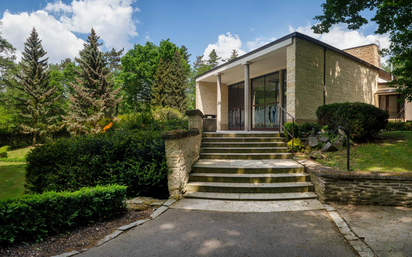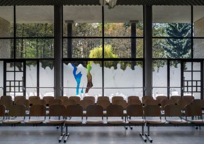 Krematorium je citlivě umístěné ve svažitém zalesněném terénu a svou dispozicí je určeno především pro komornější obřady posledního rozloučení. Obřadní síň o rozloze 100 m2 pojme až 200 smutečních hostů. Prosklená čelní stěna může být za příznivého počasí v prostřední části otevřena směrem na terasu s výhledem do zeleně.