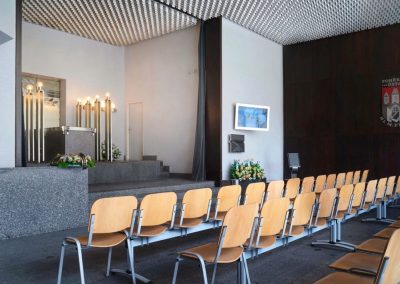 Po pravé straně po vstupu do areálu krematoria se nachází naše sjednávací kancelář, kde vyřídíte veškeré náležitosti k pohřbu. Do kanceláře je bezbariérový přístup.