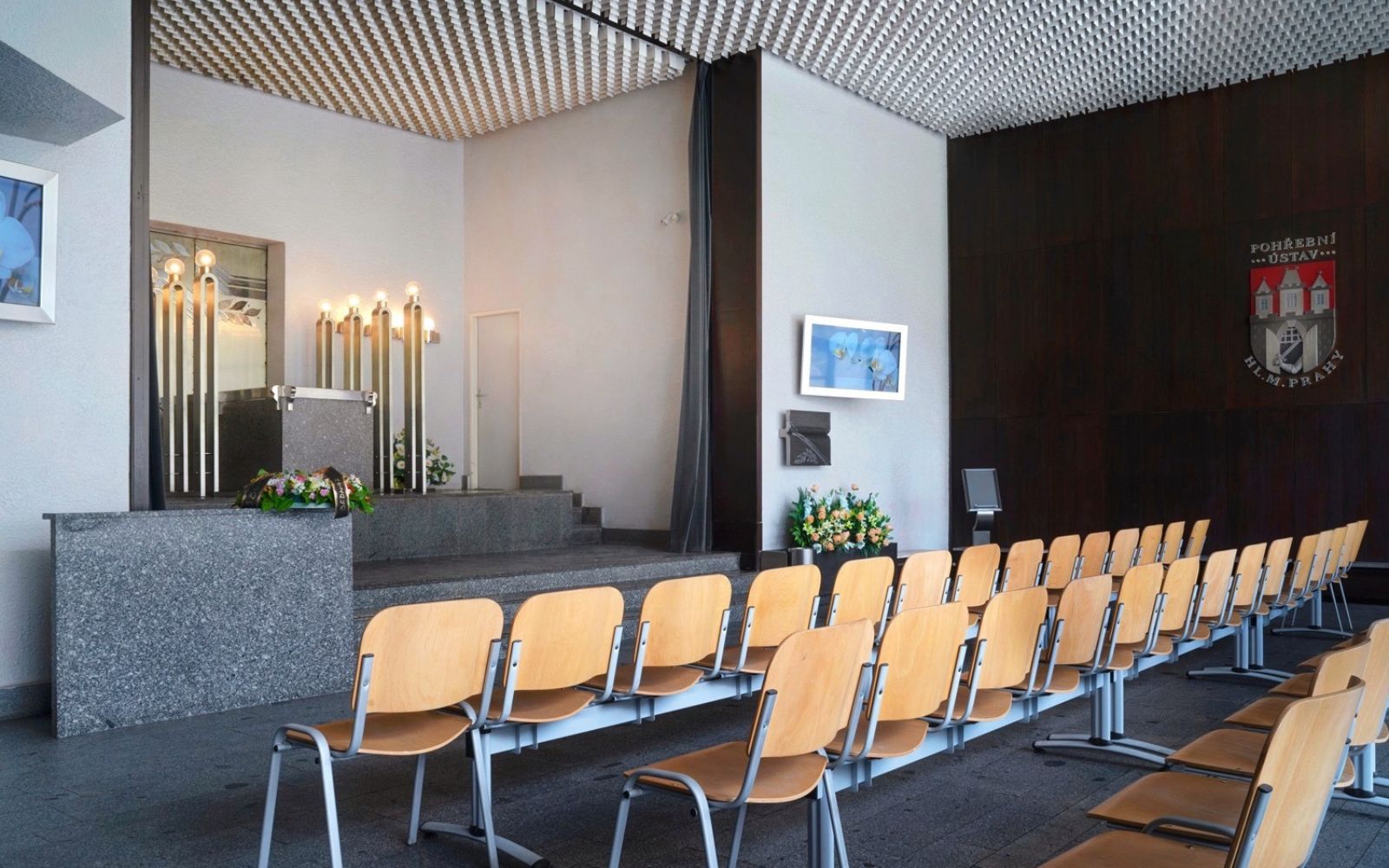 K obřadům či dalším úkonům konajícím se v prostorách krematoria pozůstalí přicházejí do levé části budovy. Zde se nachází čekárna, obřadník a zaměstnanci krematoria, kteří Vás dále doprovodí na místo, kde daná služba bude konat. Do obřadní síně a čekárny je bezbariérový přístup. Výjimka pro invalidy: je možné zajet autem až k obřadní síni.