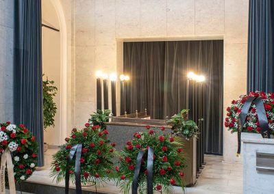 Standardní lhůta pro vydání urny jsou dva pracovní dny. Urnu však dokážeme vydat už 4 hodin po zpopelnění – tento úkon je však třeba předem domluvit ve sjednávací kanceláři pohřební služby.